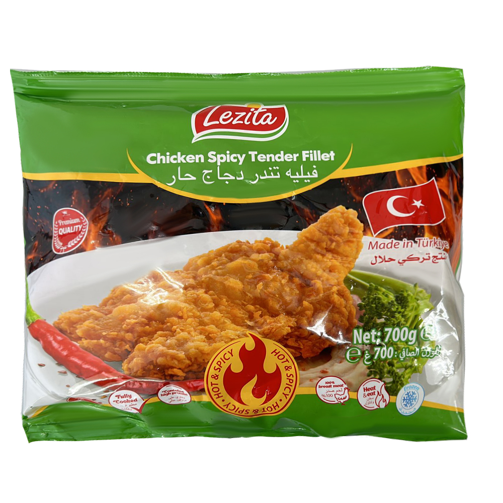 Lezita?s Chicken Spicy Tender Fillet is made from 100% halal chicken breast, offering a perfect blend of spicy chicken fillets seasoned with a bold, flavorful marinade. These marinated chicken breast fillets deliver a juicy, tender bite infused with authentic spices, making them ideal for quick meals, snacks, or adding a fiery touch to your favorite recipes.