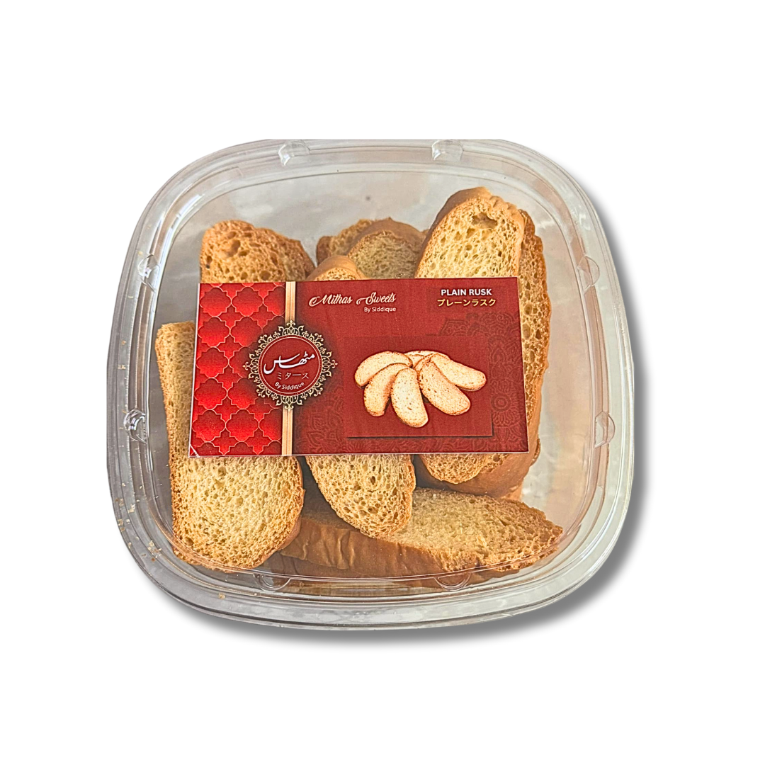 Plain rusk is a popular twice-baked, crisp, and crunchy bread product enjoyed as a light snack, especially with tea or coffee. Made from basic ingredients like all-purpose flour, sugar, milk, butter, and a leavening agent such as yeast or baking powder, plain rusk is simple yet satisfying. Its firm texture and long shelf life make it a staple in many households across the world.