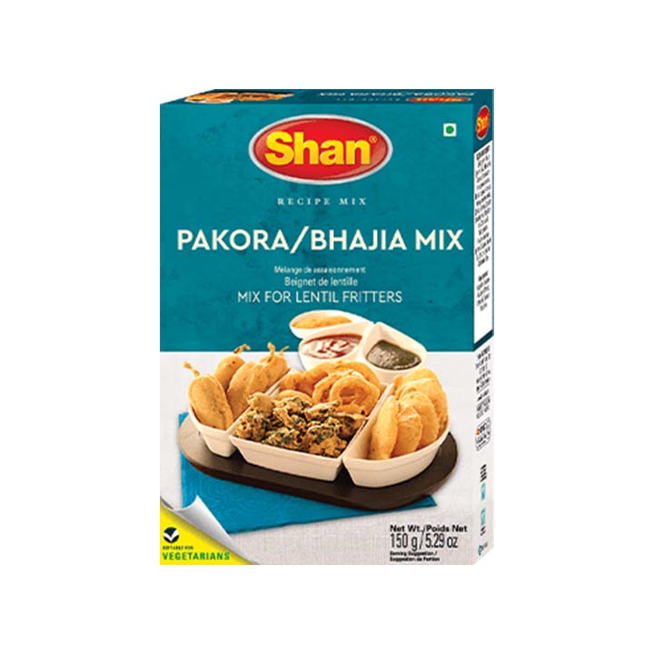 - Shan Pakora Bhaji Mix is a convenient spice blend for making crispy, golden fritters. It combines a mix of spices like cumin, coriander, and turmeric, enhancing the flavor of gram flour and vegetables. Ideal for deep frying, it creates crunchy, savory pakoras, perfect for snacks or appetizers.